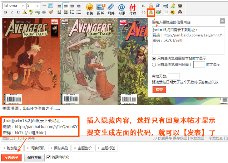 回復(fù)可見的方法與付費可見的設(shè)置方法差不多,方法如下